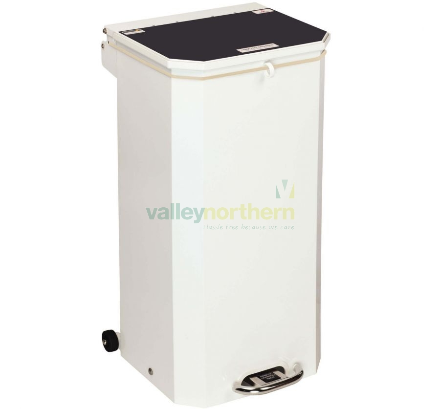 Discover the 70-litre Metal Bin with Black Lid - Fire Retardant, a versatile waste solution designed for both domestic and municipal use. This bin combines functionality and hygiene with its hands-free, pedal-operated lid. The pedal label clearly identifies waste categories, promoting efficient waste disposal. Equipped with a unique noise dampening system, the lid closes quietly. Safety is paramount, as the bin is flame retardant and features a sealed base to prevent leakage. The integrated wall mounting bracket enhances space optimization. The bin's practical design includes an elasticated cord to secure the sack in place and a nylon finger loop for easy sack replacement. Elevate waste management with this sturdy, fire-retardant metal bin that blends convenience, durability, and safety seamlessly.