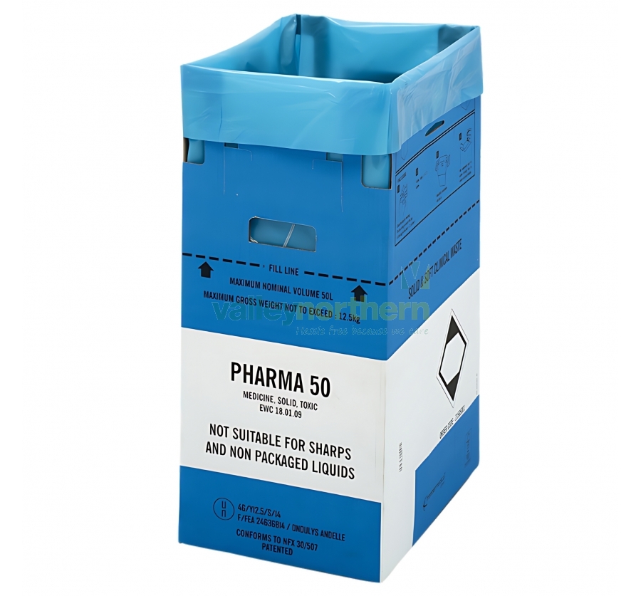 Choose the 50L Blue Cardboard Carton for a reliable, eco-friendly solution to your pharmaceutical waste disposal needs.