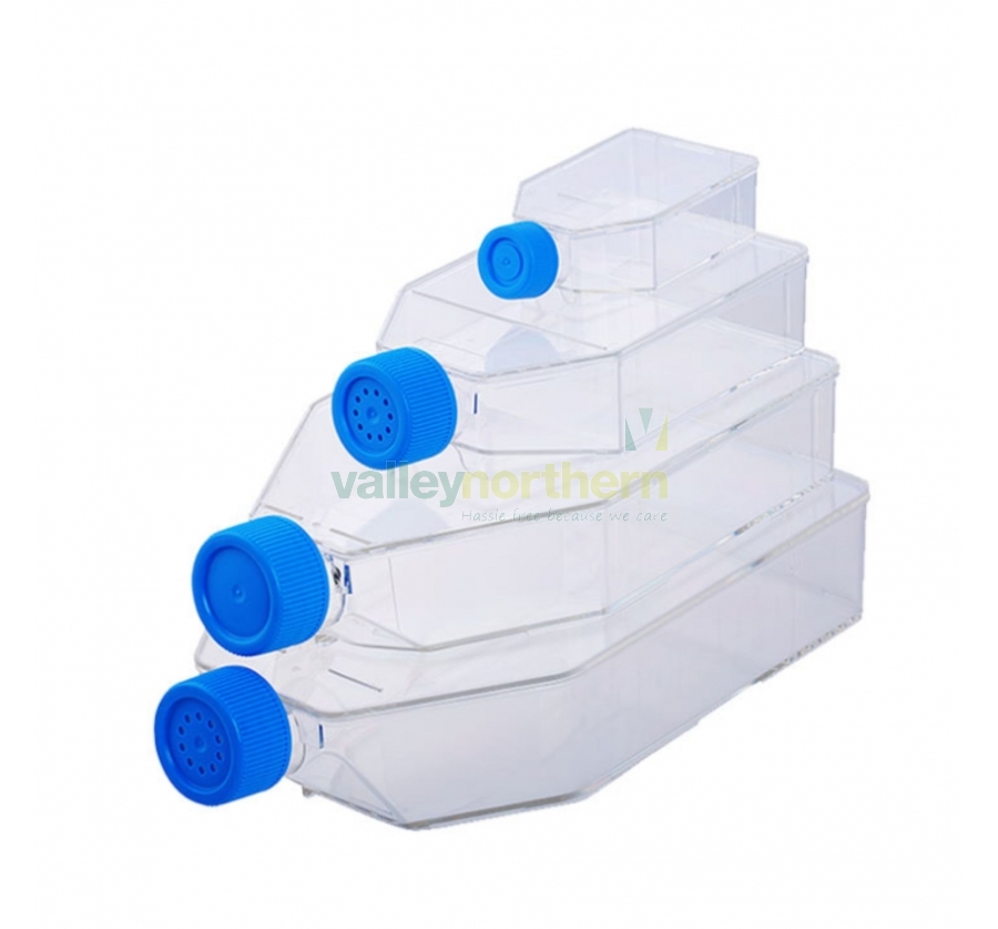 - Culture flask with breathable vented cap membrane 0.22 um, hydrophobic filter ensures gas exchange without contamination