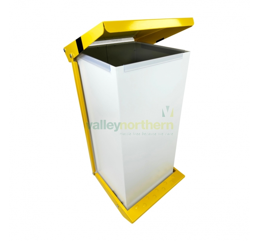 Engineered for safety, this bin is constructed from fire-retardant materials, offering an added layer of protection in high-risk environments. The bright yellow lid with a black stripe enhances visibility, helping staff quickly identify designated waste disposal areas. Its hands-free pedal operation minimizes cross-contamination risks, ensuring a more hygienic waste management process?critical for infection control in medical spaces.