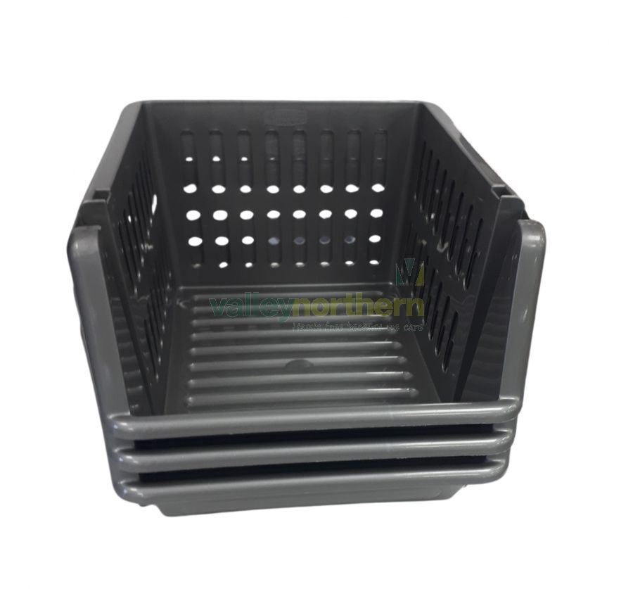 Grey Plastic Stacking Baskets - (l)210 x (w)230 x (h)130mm