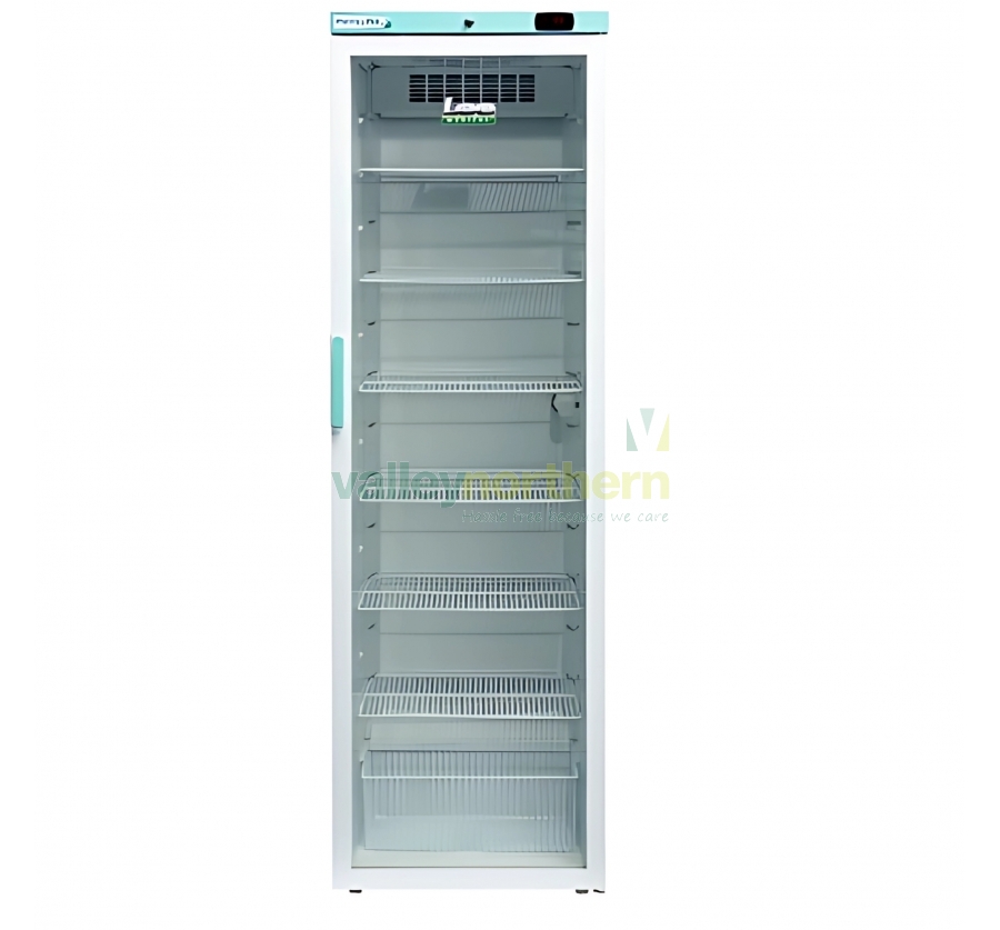The LEC Pharmacy Plus Glass Door Fridge is a high-performance refrigeration unit designed to meet the stringent requirements of medical and pharmaceutical storage. With a gross capacity of 394L and a net capacity of 389L, this fridge provides ample space for temperature-sensitive medicines and vaccines while ensuring reliable performance and security.