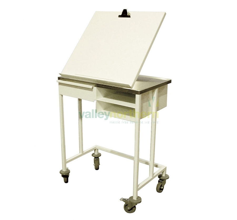 This trolley features a hinged flap with an adjustable stand, allowing staff to comfortably review notes while on the move. A built-in clip secures documents in place, preventing loss or misplacement during use. For added storage, it includes an internal tray and shelf, providing ample space for files and other necessary items.
