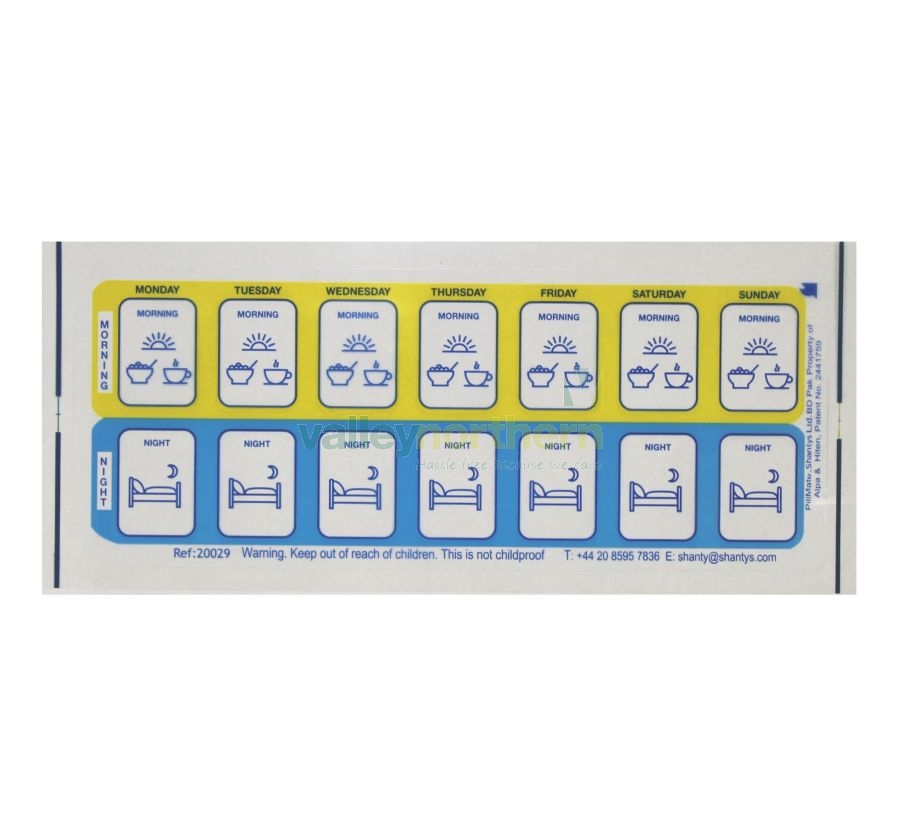 - Colour coded to make it easier for your patients to distinguish which medication to take at the prescribed time