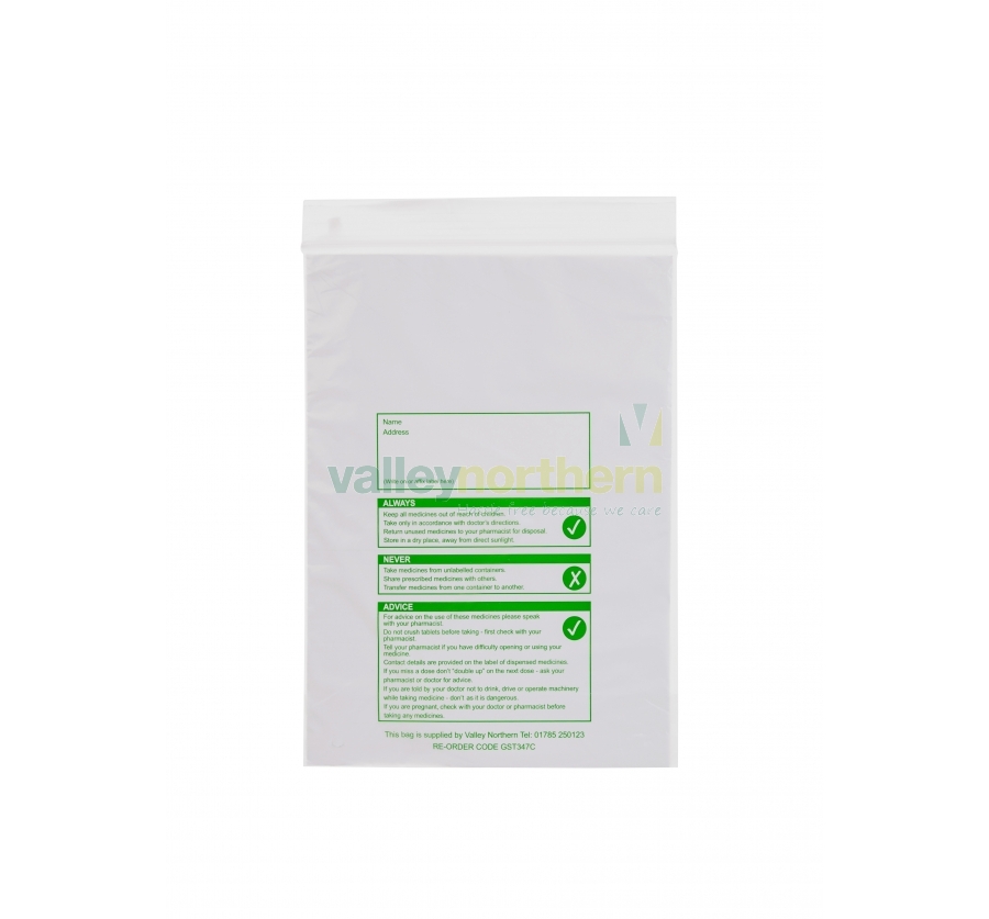 Our bags are specifically designed for prescriptions, including delivered prescriptions. The bags are complete with printed instructions on the reverse for ease of use, and the grip seal top ensures that the contents stay safe and secure.