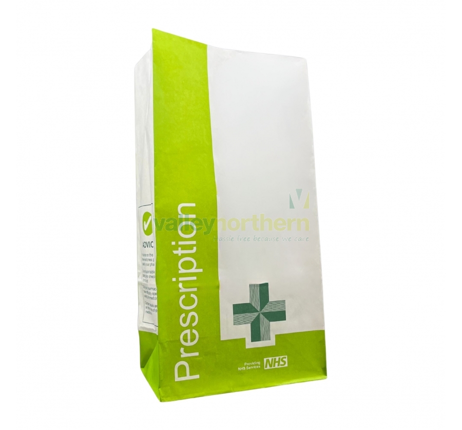 Presented on the front of the bag is the word Prescription along with the trusted Pharmacy and NHS logos. Advice and safety information is also printed on the sides of the bag for your patients. And on the back there is a designated space to affix your address labels.