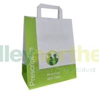 The ProPac™ Non-NHS Paper Carrier Bags are an eco-friendly and sustainable option for carrying prescriptions and other medical items. These bags are printed with a family emblem and have green and white colours. The wording "Medicine with Care" is printed on the bag, reminding patients to handle their medication responsibly.