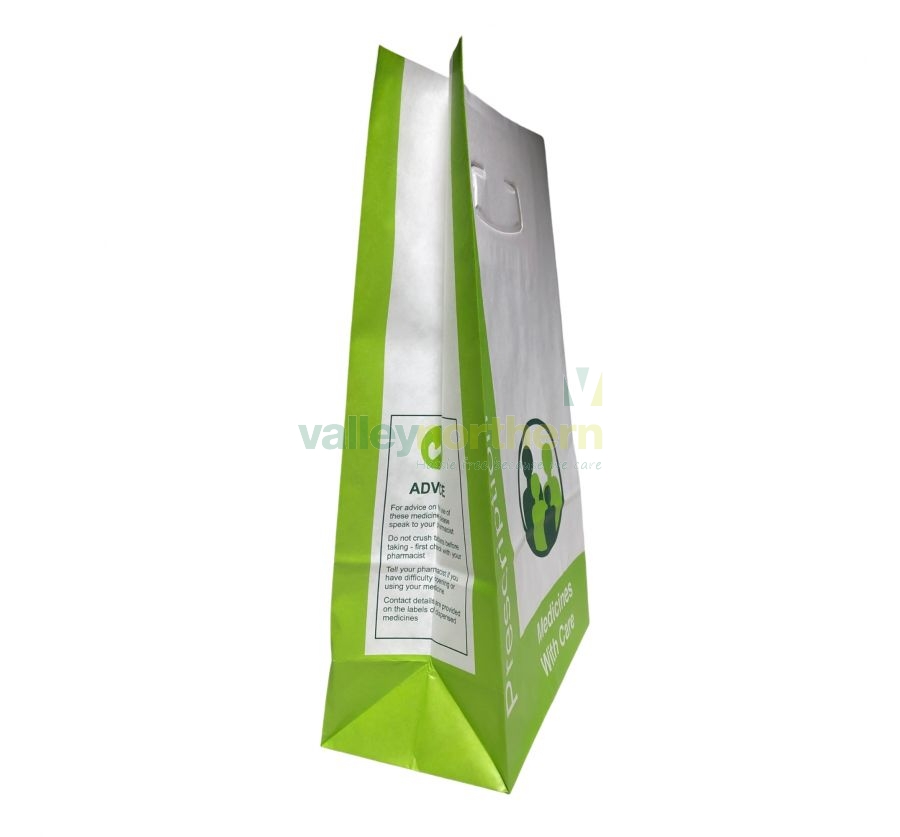 Our bags are manufactured from premium quality Kraft paper, with a reinforced patch handle that makes it easy to transport large or heavy prescriptions. The block bottom also allows the bag to stand upright, making packing and storage easy and safe.