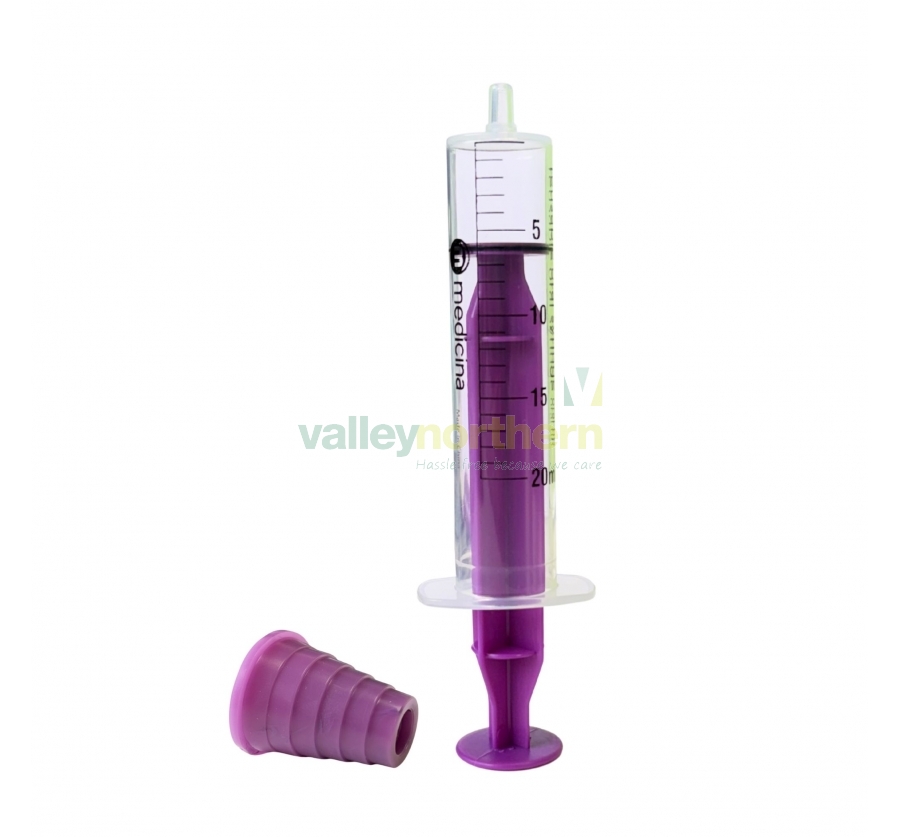 The vibrant purple hue adds a touch of distinction, making it easily identifiable among other medical tools. Engineered with a smooth oral tip connector, this syringe guarantees a comfortable and seamless medication delivery experience for patients of all ages. Clear measurement markings enable accurate dosing, ensuring precise and error-free administration.Comprising a three-piece design with a barrel, plunger, and silicone gasket, this syringe ensures optimal functionality and durability for repeated use. Manufactured with DEHP and latex-free materials, it prioritizes patient safety and comfort. With a generous capacity of 20ml, this syringe is versatile enough to meet various dosage requirements. The CE marking attests to its compliance with the essential health and safety requirements, ensuring it meets the rigorous quality standards for medical devices. Experience the pinnacle of oral medication precision with the Purple Oral Syringe 20ML.