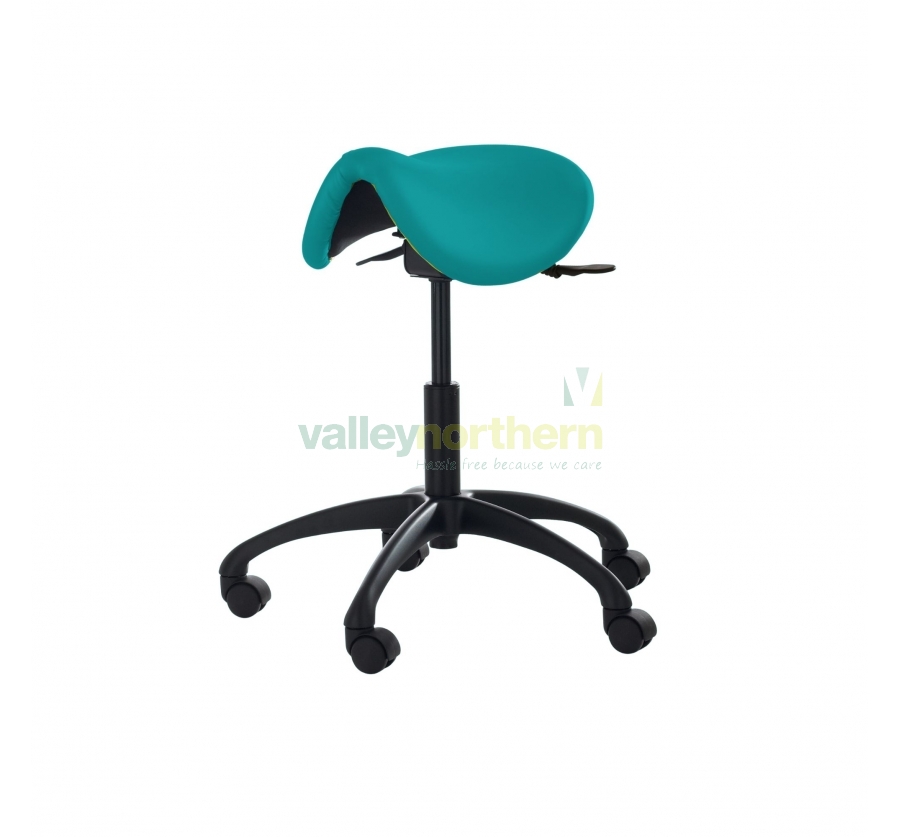 Introducing the Teal Saddle Stool – a UK-produced gem designed for optimal comfort and style. Featuring a soft-touch polyurethane seat mounted on a PU saddle, this stool ensures a comfortable and ergonomic sitting experience. Its sleek black polypropylene base and standard castors provide durability and mobility. Upgrade your workspace with the Teal Saddle Stool – where comfort meets modern design.