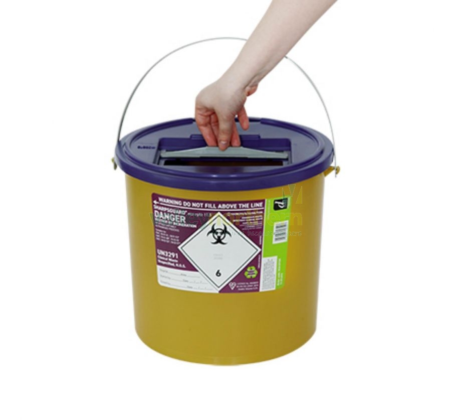 - Yellow base with purple lid, in line with HTM 07-01 waste segregation guidance