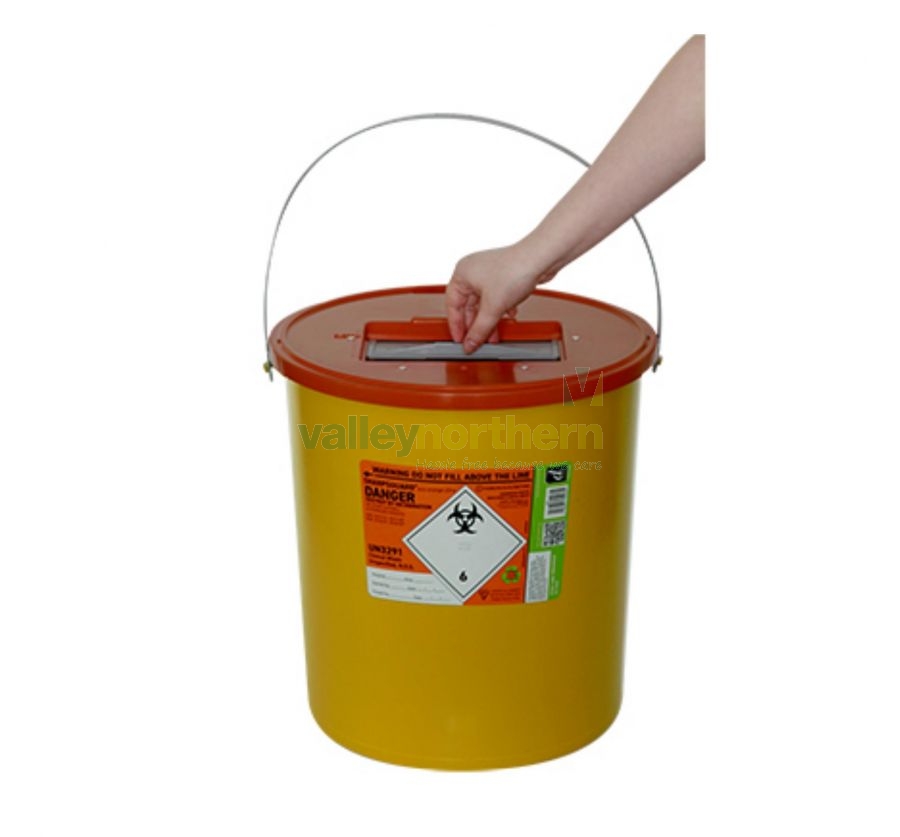 - Predominantly yellow base and orange lid, in line with HTM 07-01 waste segregation guidance