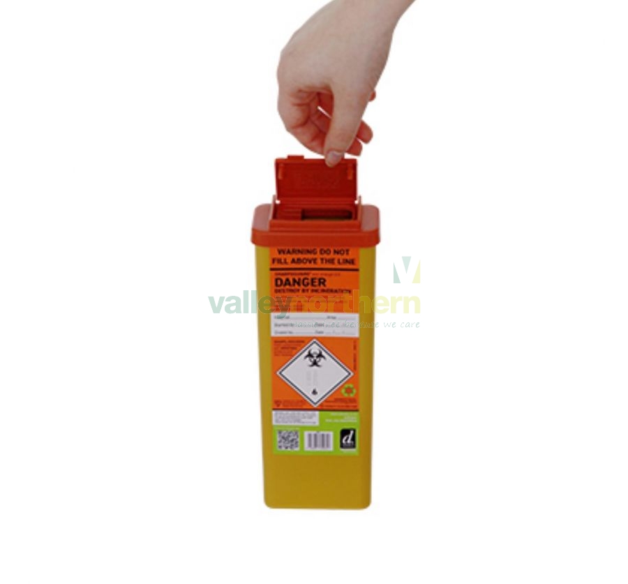 - Environmentally friendly sharps bin for disposal of non-contaminated sharps