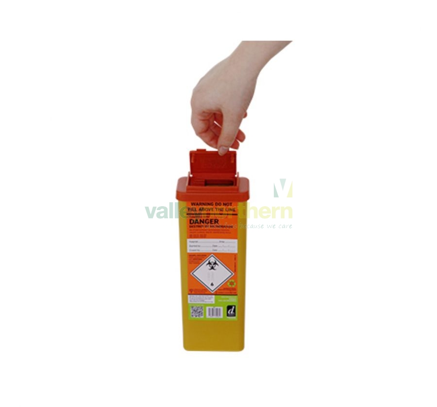 Equipped with a needle remover, this bin offers a comprehensive solution for safe sharps disposal. Its compact design further enhances its practicality, while the vibrant yellow bin paired with an orange lid ensures easy identification.