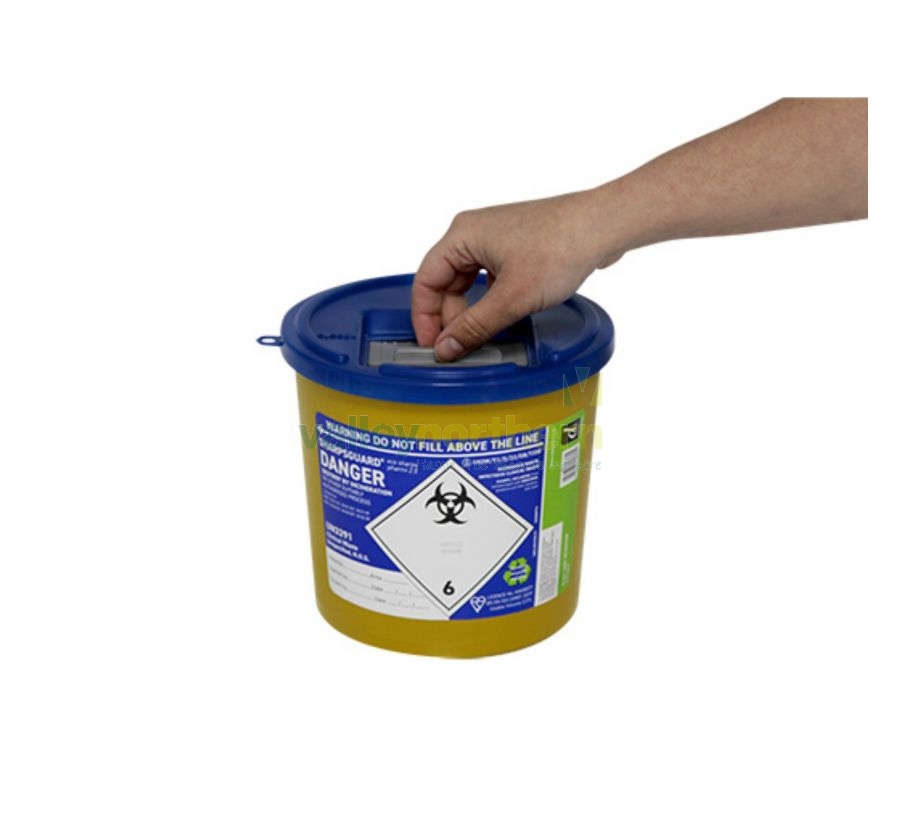 Introducing the Sharpsguard™ Eco Sharps Bin with Scottish Labelling – a reliable solution for safe disposal of contaminated medicinal products. With a 2.5 litre capacity, this compact yet capacious bin offers an eco-conscious approach, crafted from 44% recycled plastic. Designed for general purpose use in hospital wards or departments, its distinctive yellow base and blue lid provide easy identification and segregation. Compliant with the yellow waste stream and certified for UN3291 Clinical Waste, this bin ensures secure containment. Its compact design, measuring (h) 166 x (l) 176 mm, offers seamless integration into various spaces. Meeting ISO 23907-1:2019 standards, it guarantees the highest quality in clinical waste management. Trust in the Sharpsguard™ Eco Sharps Bin for efficient, sustainable, and safe disposal in line with Scottish regulations.