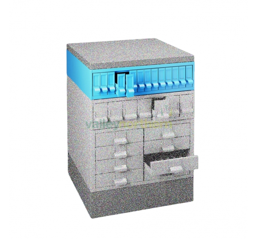 Introducing the Sliding Storage Cabinet, a robust solution designed to efficiently store and organize up to 6,000 slides (26mm x 76mm) in your laboratory or workspace. Crafted from durable powder-coated steel with a zinc-coated outer casing, this cabinet ensures longevity and protection for your valuable slides. Featuring convenient finger pulls for easy access, retrieving slides is effortless and hassle-free. Available in a range of attractive colors including blue, green, and two-tone grey, it not only offers functionality but also adds a touch of aesthetic appeal to your workspace. Additionally, its stackable design allows for space-saving storage and customization according to your needs. Upgrade your slide storage solution with the Sliding Storage Cabinet and keep your slides organized and accessible at all times.