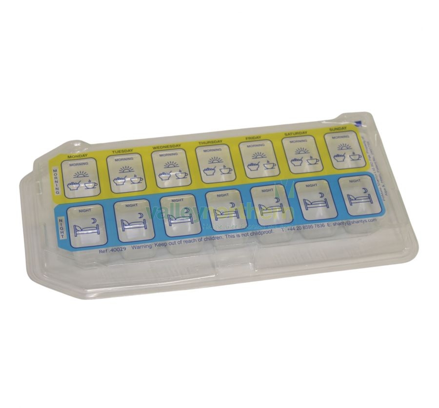 Each pack includes 50 trays, seals, and paper lids, providing you with a reliable supply to cater to your patients' needs. The trays are thoughtfully designed with 7 days divided into 2 sections for each day, allowing you to neatly arrange medications for morning and evening dosages.