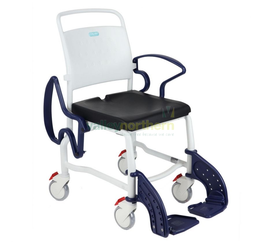The chair's PU molded seat is designed for comfort and durability, and it is also waterproof for hygiene purposes. Retractable armrests ensure secure patient transfer and easy access. Height-adjustable footrests that can be swung away when not needed offer flexibility and convenience.