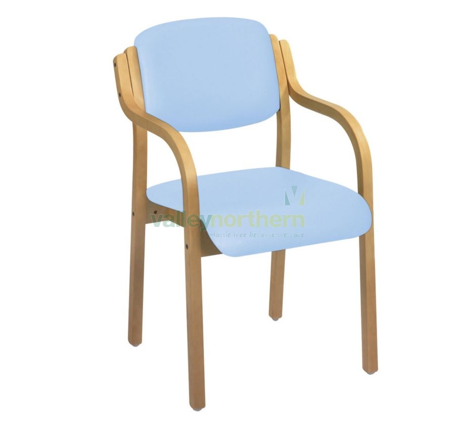 Provide your patients with the highest level of comfort when seated by opting for this visitor chair. Its deep foam backrest and seat are luxuriously soft. Covering this, the cool blue vinyl has an anti-bacterial finish and is wipe clean for easy sanitization. Sitting on a solid lacquered deluxe beech wood frame, this chair can hold up to 110KG.
